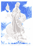 I have a spiritual connection with Kwan Yin that serves as creative inspiration. What I feel in my heart, is reflected in my artwork...thus my clinic name, the Heart of Touch, a play on words! My love of Kwan Yin led me to develop a line of greeting cards, and my most technically difficult print to date, a 9 colour large screen print of Kwan Yin standing on a dragon, in a blue sky with white clouds.